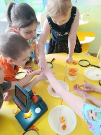 По мере развития исследования, когда дети приступили к изучению очищенного мандарина, стало ясно, что именно кожура играет ключевую роль в плавучести. Очищенный фрукт, лишенный своей защитной оболочки, наоборот, моментально пошел ко дну. Это наблюдение подвело детей к важному выводу: в кожуре мандарина содержатся мельчайшие воздушные "карманы" или "шарики", которые, будучи легче воды, придают всему плоду дополнительную подъемную силу. Когда же эти воздушные пространства устранены, остается только мякоть, которая, как выяснилось, тяжелее воды и поэтому тонет. Таким образом, простой мандарин становится наглядной иллюстрацией действия архимедовой силы и значения плотности для плавучести тел.